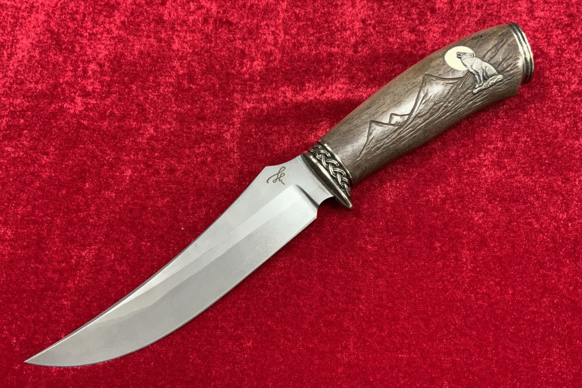 Фотография, картинка, Булатный нож 076 "Одинокий Волк" (легированный булат), И. Пампуха, корень ореха, инкрустация, резьба