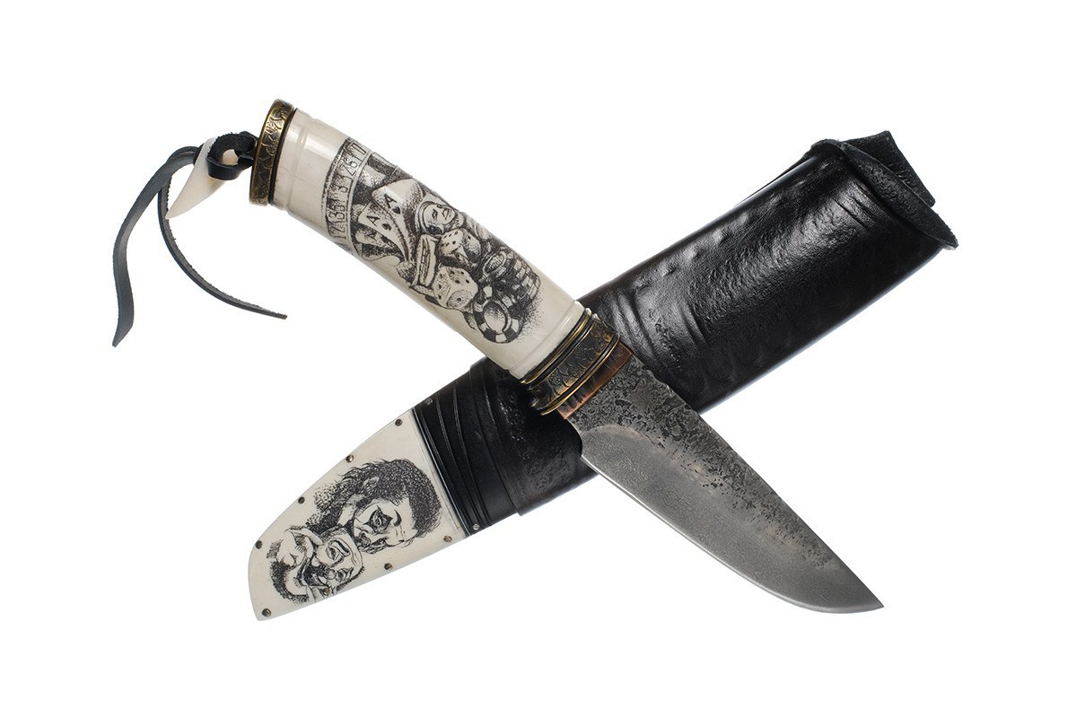 | Материал ножен: | черный граб, рог лося, кожа, скримшоу |