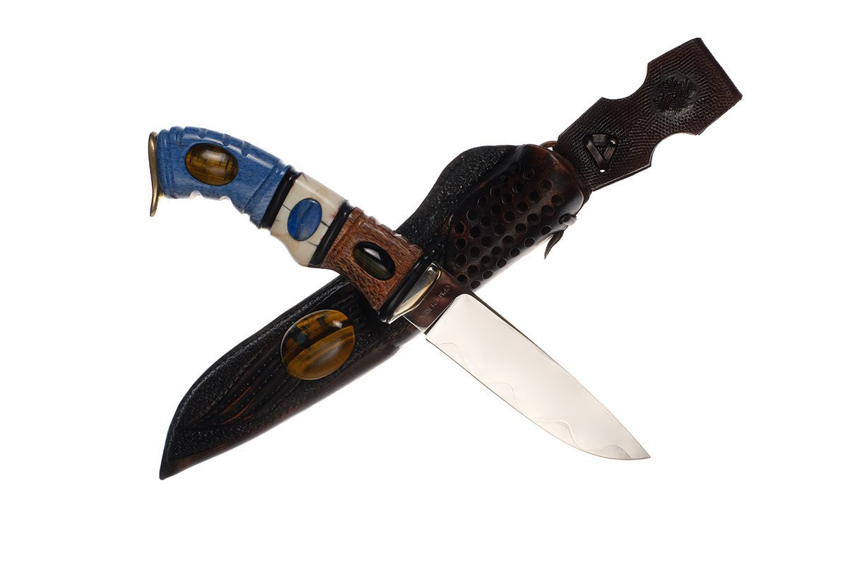 | Описание рукояти: | Мокуме, ребро кита, морж, тигровый глаз, лазурит |