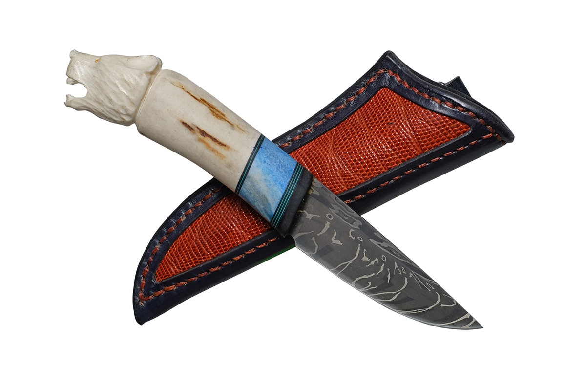 Фотография, картинка, Нож "Медведь" (мозаичный дамаск), А. Корзун, рог лося