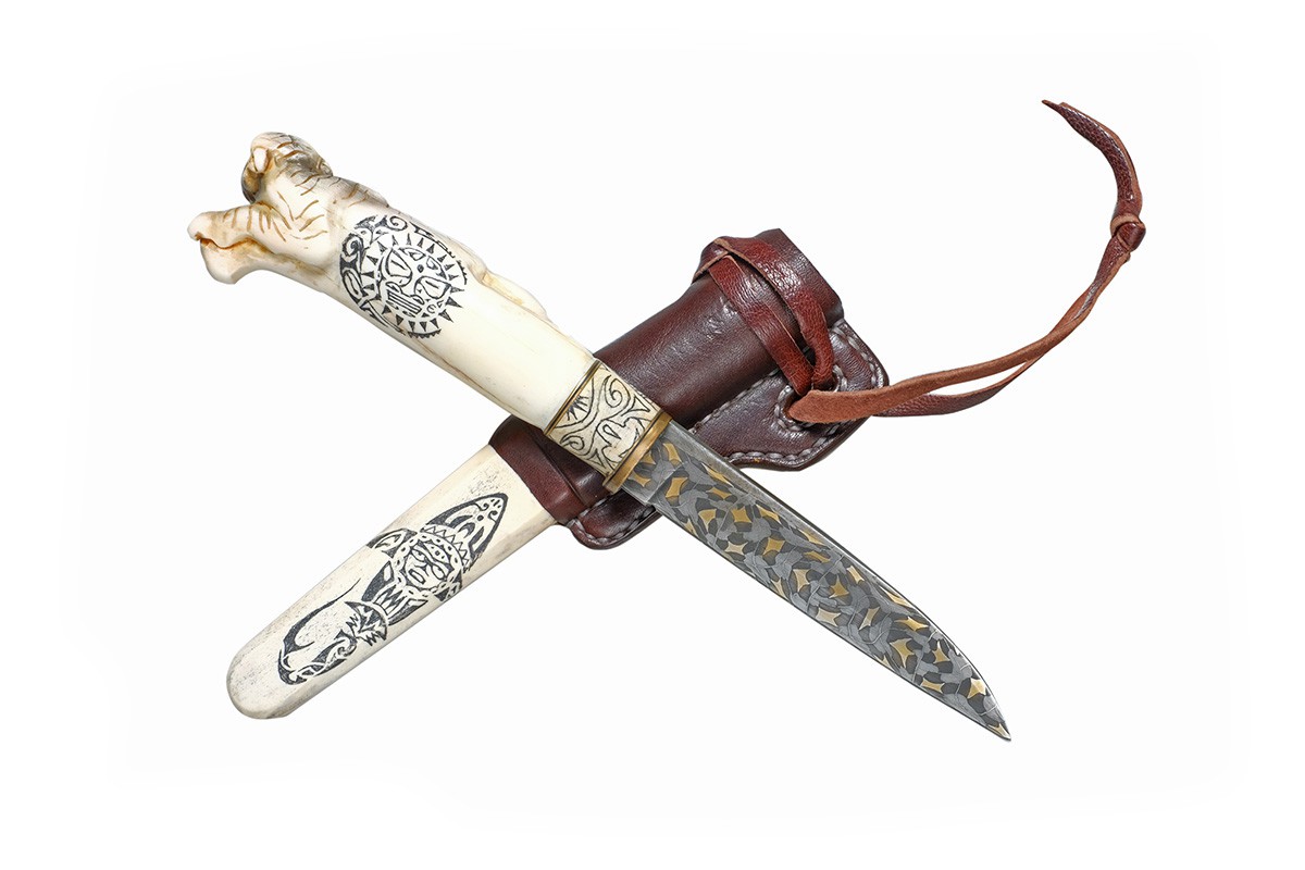 | Материал ножен: | Кожа, рог лося, скримшоу |