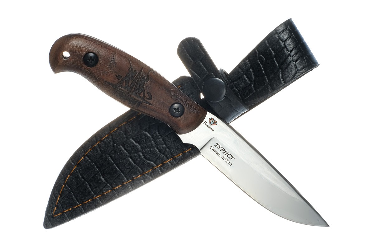 Нож Турист (сталь 65Х13), ц.м., орех, резьба