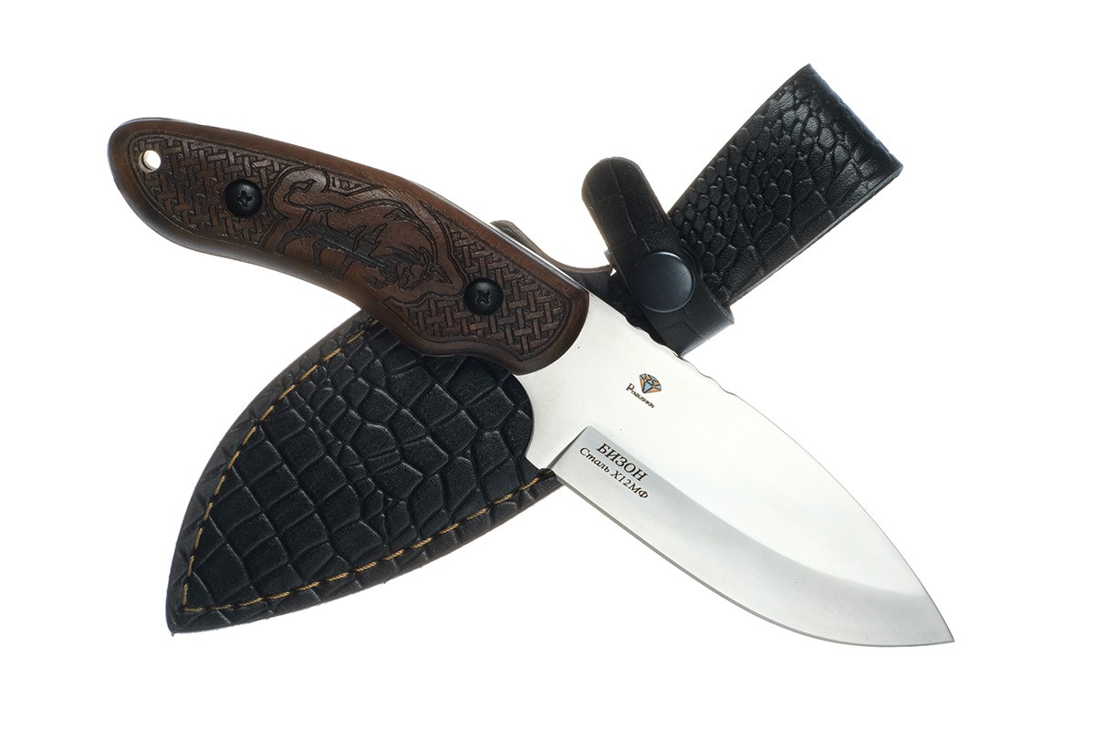 Нож Бизон (сталь Х12МФ), ц.м., орех, резьба