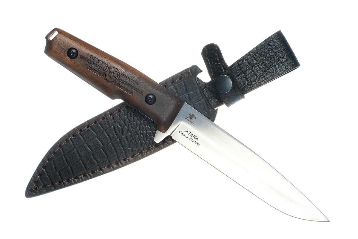 Нож Атака (сталь Х12МФ), ц.м., орех, резьба