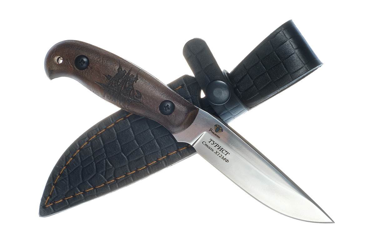 Нож Турист (сталь Х12МФ), ц.м., орех, резьба